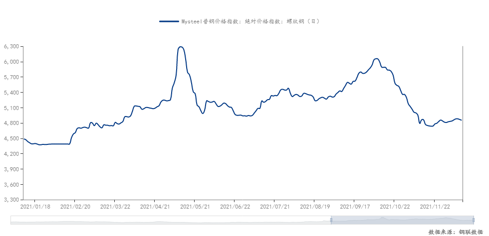 2021年螺紋鋼現貨價格走勢(數據來源:鋼聯數據)