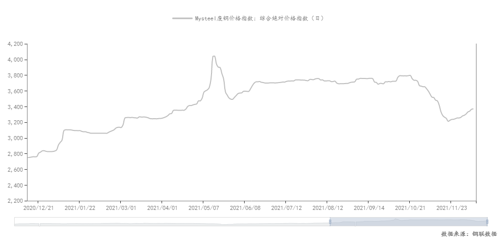 2021年廢鋼價格走勢(數據來源:鋼聯數據)